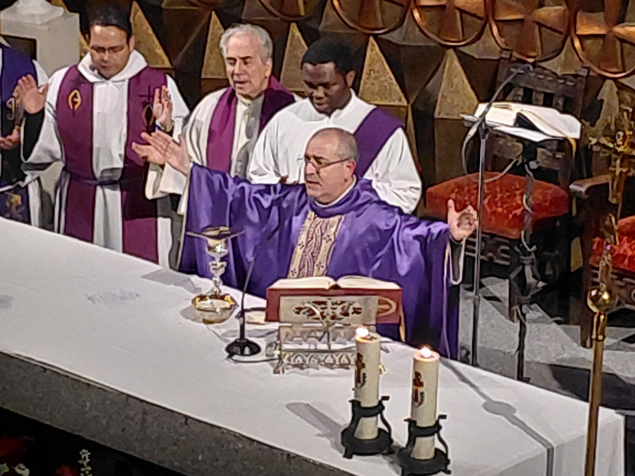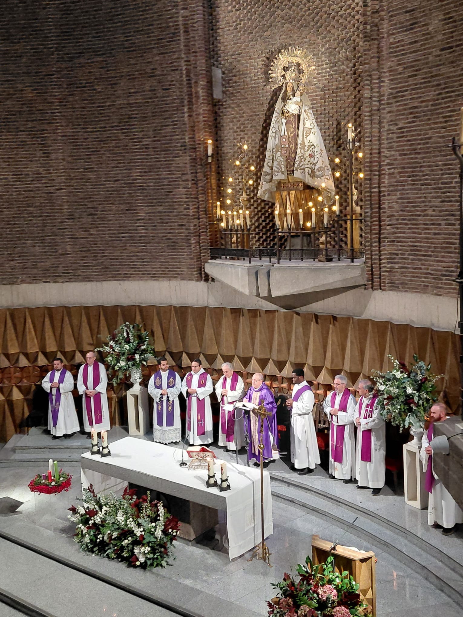 La celebración fue presidida por el mismo P. Desiderio y estuvo acompañada de muchos hermanos en la fe, que con rostros conmovidos y llenos de fraternidad manifestaron su gratitud por todo el bien recibido durante este tiempo. Entre ellos, estuvieron los diferentes grupos de apostolado de la parroquia, las congregaciones de las Hermanas de la Virgen María del Monte Carmelo, las Carmelitas del Sagrado Corazón de Jesús, así como también algunas Monjas Carmelitas de Zaragoza, Madrid, Huesca… Participaron también carmelitas Onda (Castellón), Salamanca, Madrid-Flor del Carmelo y Nuestra Sra. de Begoña de Madrid y un considerable número de sacerdotes, laicos y amigos de la gran familia del Carmelo.