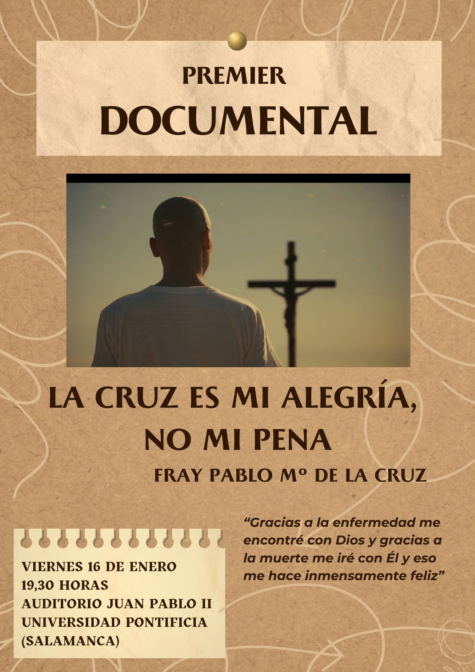 La Orden Carmelita comienza el nuevo año con el estreno de un documental titulado: “LA CRUZ ES MI ALEGRÍA, NO MI PENA” sobre Pablo María de la Cruz, un joven de Salamanca que falleció en julio de 2023 a los 21 años de edad, unas semanas después de haber realizado sus votos como carmelita en el Convento de San Andrés (El Carmen de Abajo).
