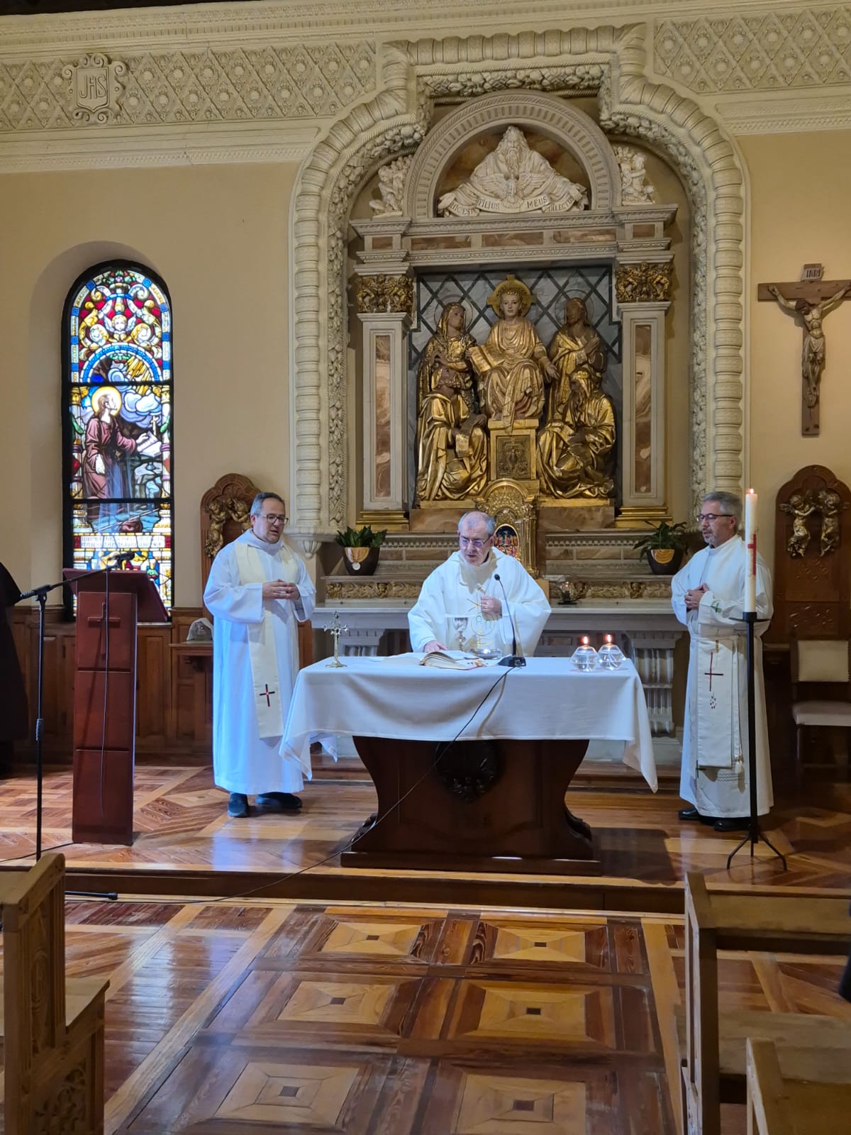 Al final de la tarde, nos desplazamos a la Iglesia de El Carmen de Abajo para celebrar allí la Eucaristía de clausura del Capítulo Provincial, presidida por Mons. José Luis Retana, obispo de Ciudad Rodrigo y Salamanca, y concelebrada por el Prior General, fr. Desiderio García, y por el Prior Provincial, fr. Salvador Villota, entre otros sacerdotes.